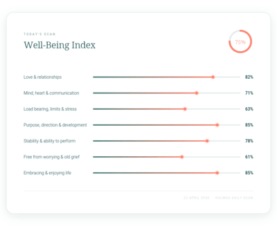 After investing in totally new hard- and software and upgrading the software with AI (to help explain outcomes in normal people language), Kalmoa is ready for global roll-out. We are proud to tell you, you can now actively work on your mental state from the comfort of your own home!